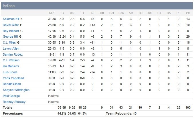 En plus de ses 29 points (dont 12 dans le dernier quart-temps) à 12/24, 9 passes et 7 rebonds, George Hill a offert aux Pacers une victoire qui fait le plus grand bien (après 6 défaites de rang) avec un layup à 2.7 secondes du buzzer qui a libéré Indiana, 103-101, sur le parquet des Wizards, cette nuit.