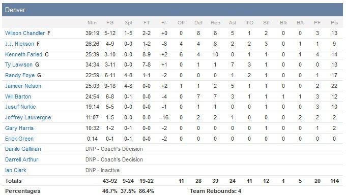 Aldridge, auteur de 14 points en première mi-temps, va continuer son festival dans le troisième quart, durant lequel il inscrit 16 points pour transformer l’avance de 5 points des siens à la pause en avantage 66-55 puis 86-78. Mais les Nuggets sont encore loin de s’avouer vaincus et reviennent à trois points sur un tir primé de Nelson à 5″36 de la fin du match, 101-98. Les Blazers (4V-0D contre Denver cette saison) repoussent immédiatement la menace d’un comeback en infligeant un 7-0 à ses adversaires, Batum offrant 10 points d’avance à son équipe à 2″26 sur un 3-points.