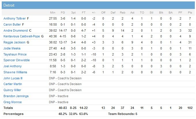 Les Pistons avaient pourtant des raisons d’espérer remporter un 5e match consécutif avec un gros match d’Andre Drummond (32 points et 14 rebonds) et Reggie Jackson (31 points et 9 passes). Miami (7/18 à 3-points)va user de 7 joueurs en seconde mi-temps après avoir perdu Luol Deng (genou) et Michael Beasley (coude) lors des deux premiers quarts-temps, Hassan Whiteside, Chris Andersen et Shabazz Napier étant déjà out, sans compter les absences de Chris Bosh et Josh McRoberts.