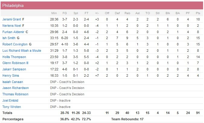 Malgré l’absence de trois titulaires, les Hornets ont encore un mince espoir de se qualifier et ont pu compter sur 24 points de Kemba Walker et 18 de Mo Williams. Robert Covington est le meilleur marqueur des Sixers (19 défaites en 20 matchs à l’extérieur) avec 15 points et son équipe a laissé filer plusieurs chances de l’emporter. Devant d’un point, Philadelphie voit Ish Smith manquer un 3-points à 25 secondes du buzzer.