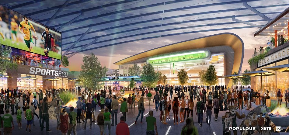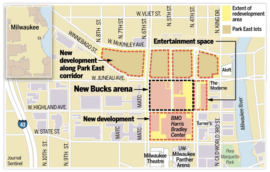 On le sait, s’ils veulent rester à Milwaukee, les Bucks doivent honorer leur promesse de construire une nouvelle salle dans les 5 années et aujourd’hui ils ont dévoilé leur projet. Un projet qui inclut donc une salle à 500 millions de dollars juste au nord de l’actuel Bradley Center, mais pas seulement. En effet il est aussi prévu d’aménager les environs de la salle (commerces, loisirs, résidences et bureaux) et d’y construire un centre d’entraînement pour 500 millions de dollars de plus.
