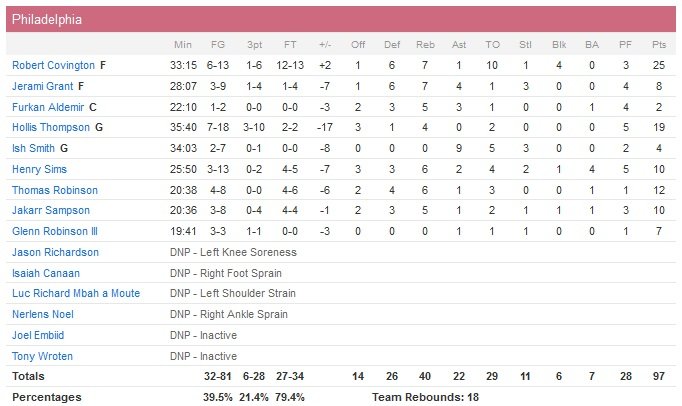 Michael Carter-Williams (30 pts) punit Philadelphie