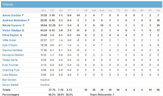 À 9 minutes de la fin du match, le Magic (5/13 aux lancers-francs) reprend le dessus d’un point avant d’encaisser un 10-0 de la part de leurs adversaires, portés par 7 points de Joe Johnson (16 points à 7/15, 7 rebonds et 6 passes). Nikola Vucevic termine lui à 26 points et 11 rebonds alors qu’Evan Fournier a encore une fois été laissé au repos, toujours en raison de sa hanche droite.