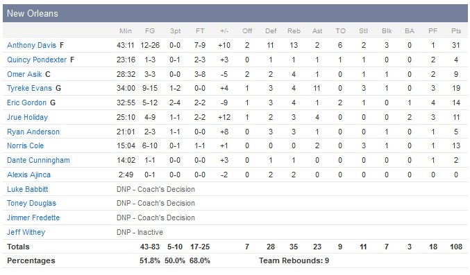 Une série de stops et de pénétrations vont néanmoins leur permettre de calmer le coup de chaud de leurs adversaires en reprenant 11 points d’avance dans le sillage de Gordon et Evans. Gordon rentre un 3-points clutch et Davis un shoot à 1″36 pour réduire un peu plus les chances de San Antonio. Le match se termine sur une série de temps-morts et de lancers-francs et c’est Holiday qui bouclera la rencontre à 9.5 secondes, avec un 2/2.