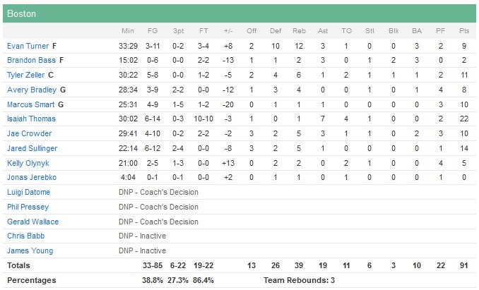 Intenses et accrocheurs, les Celtics mettent les locaux mal à l’aise en début de match. Cleveland perd ainsi 4 ballons sur les 6 premières minutes du match et 18 en tout. Les hommes de David Blatt souffrent également rapidement de problèmes de fautes, Kevin Love (13 points et 6 rebonds) prenant sa seconde après seulement 4 minutes sur le parquet. Timofey Mozgov a également fait du bon boulot face à Tyler Zeller (11 points à 5/8 et 6 rebonds) dans la raquette et termine à 16 points à 7/11, 7 rebonds et 5 contres. Mené par 22 points d’Isaiah Thomas (meilleur marqueur de Boston, 6/14 aux tirs, 7 passes), le banc des Celtics (38.8% de réussite contre 44.7% pour leurs adversaires) domine largement celui des Cavaliers avec 51 points à… 7. Matthew Dellavedova signe 5 points, Iman Shumpert 2 et Tristan Thompson rattrape sa faible contribution offensive avec beaucoup de rebonds dont trois offensifs importants en fin de match.