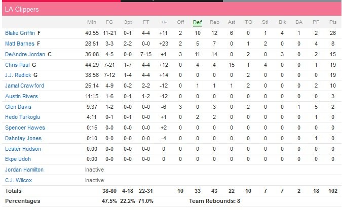 Les Clippers sont allés chercher une énorme victoire à San Antonio pour éviter l’élimination et forcer un match 7 en s’imposant 102-96 au terme d’un match d’une grande intensité cette nuit. Chris Paul et Blake Griffin ont parfaitement assumé leur statut de leaders (particulièrement en seconde mi-temps) avec respectivement 19 points et 15 passes et 26 points à 12/21, 12 rebonds, 6 passes et 2 contres !