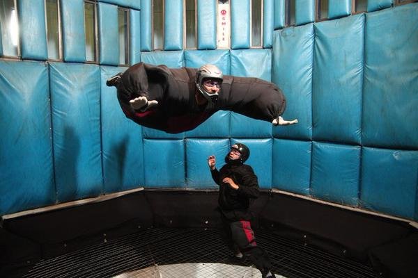 Qui est ce joueur NBA dans un simulateur de chute libre ?