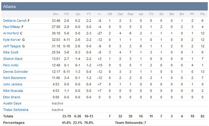Le match commence sous les meilleurs auspices pour les visiteurs avec une avance de 5 points 26-21 au terme du premier quart-temps. James (qui a su profiter d’un DeMarre Carroll pas à 100% en raison de sa blessure au genou) marque 13 points dans la période alors que Tristan Thompson (7 points et 16 rebonds) et Timofey Mozgov (10 &7) se font respectivement remarquer par leurs 8 rebonds et 6 points. Atlanta recolle à deux points 35-33 sur un layup de Paul Millsap (4 points à 2/8) en milieu de deuxième quart mais après un rapide 5-0, Cleveland reprend le contrôle 40-33. LeBron James régale en fin de période pour Iman Shumpert (16 points à 6/11 et 4 rebonds) et James Jones (9 points) de loin mais Jeff Teague (12 points à 5/16, 3 rebonds et 6 passes) maintient l’écart à 5 points 54-49 à la pause en trouvant un layup dans les dernières secondes.
