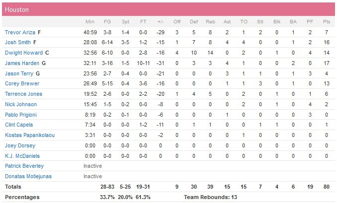 Désormais menés 3-0, les locaux ont pris un éclat dès le premier quart-temps en encaissant 30 points tout en n’en marquant que 18 (plus petit total des playoffs sur cette période). Andrew Bogut (12 points à 5/8 et 12 rebonds) inscrit 10 points sur ces 12 premières minutes du match. Golden State prend donc 12 points d’avance avant même que Curry ne prenne feu. James Harden, catastrophique aux shoots toute la soirée. Loin de ses performances du match 1 et 2 (17 points à 3/16 et 10/11 aux lancers-francs, 3 rebonds et 4 passes), il ramène les siens à 9 points à 6 minutes de la fin du deuxième quart-temps quand Curry décide de prendre le contrôle des opérations.