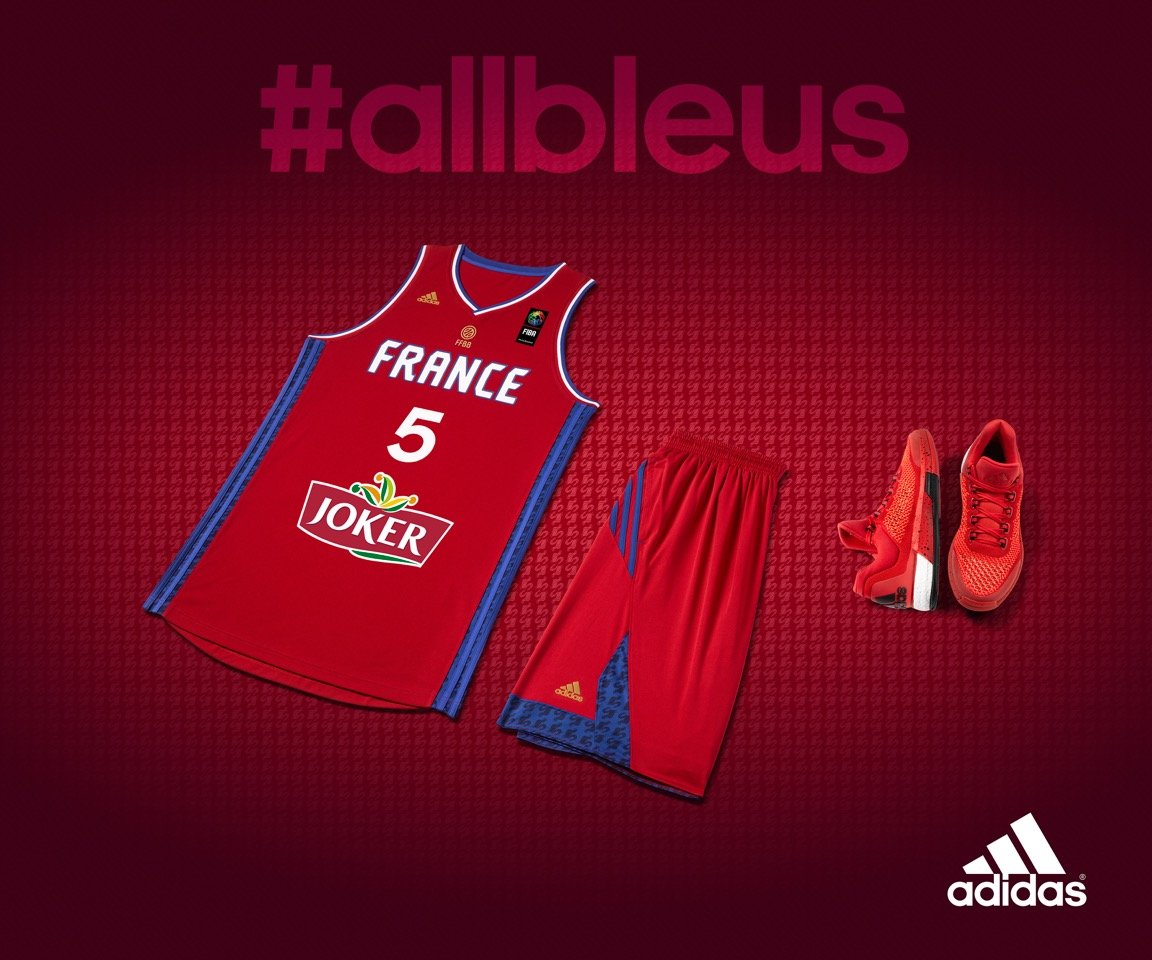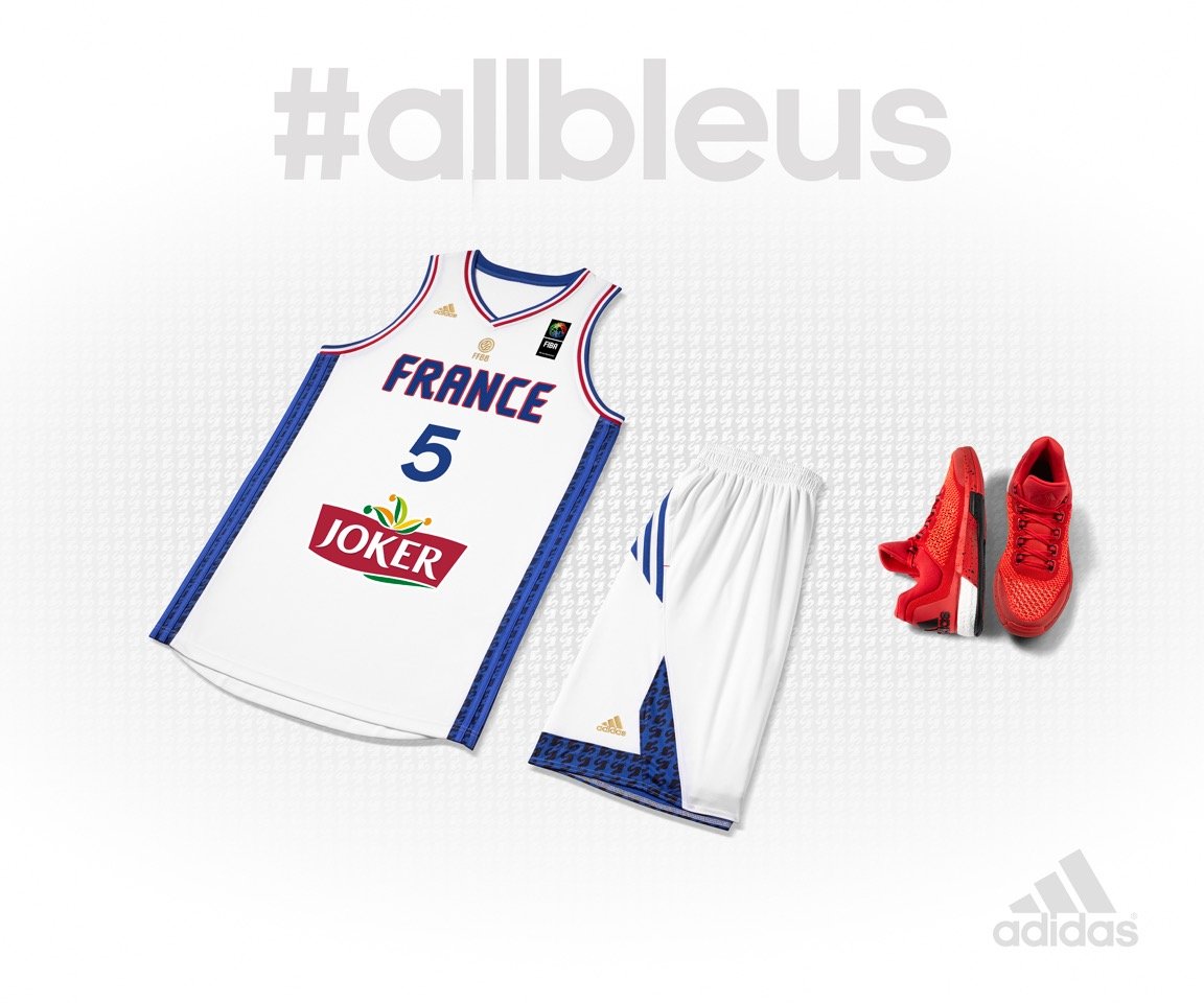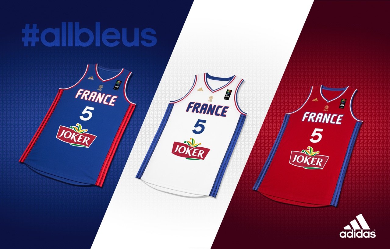 A 100 jours du début de l’Eurobasket 2015, en grande partie organisé en France, adidas a dévoilé les trois nouveaux maillots de l’équipe, en bleu blanc et rouge bien sûr. Le maillot bleu sera commercialisé sur la boutique officielle de la FFBB et le site adidas.fr à partir du 14 juin et le 1er juillet en magasin. Les maillots blanc et rouge seront disponibles dès le 1er août.