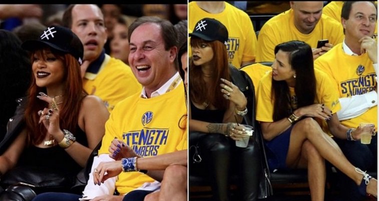 Fan de basket, Rihanna était présente au match 1 des Finales, et bien sûr au premier rang. La chanteuse a clairement choisi son camp, Cleveland et surtout LeBron James. Joe Lacob, propriétaire des Warriors, était assis juste à côté d’elle (il ne l’a pas invitée), et au bout d’un moment il en a eu marre de l’entendre.