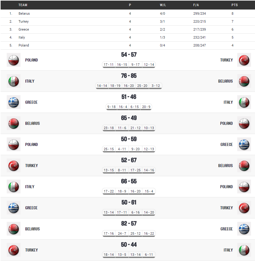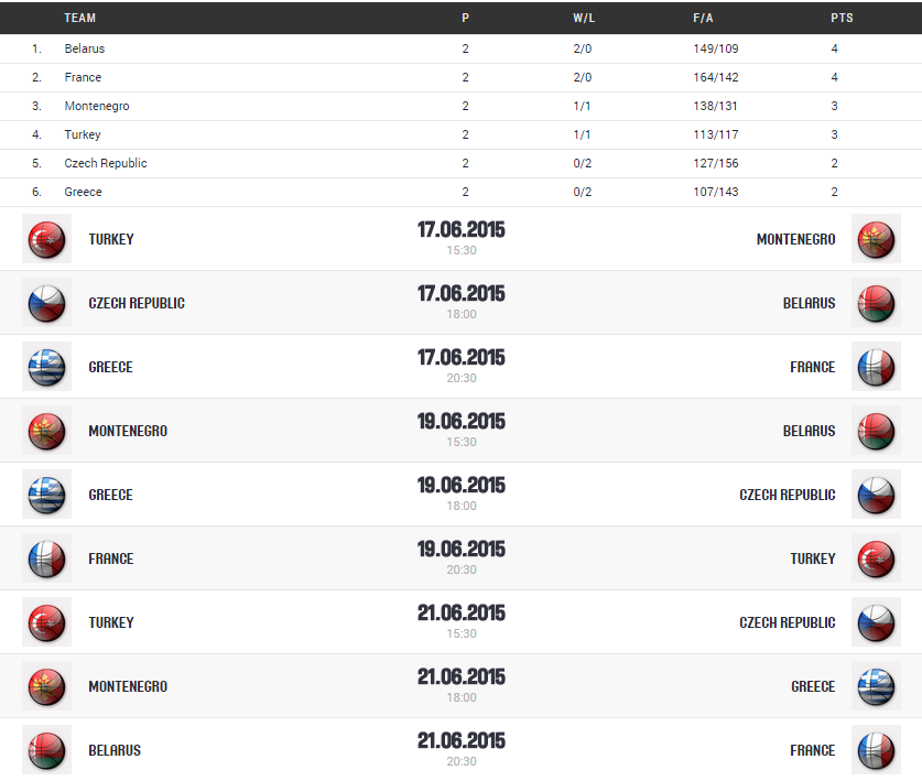 Le premier tour de l’Eurobasket féminin est terminé et voici un point sur les quatre groupes dont les trois premières équipes sont qualifiées pour la seconde phase. A noter que les équipes qualifiées conservent leurs points acquis face aux équipes qui sont également qualifiées. Par exemple la France part avec deux victoires puisqu’elle a battu la République Tchèque et le Monténégro. Elle retrouvera la Grèce, la Turquie et la Biélorussie avec l’objectif de terminer première du groupe en vue des quarts.