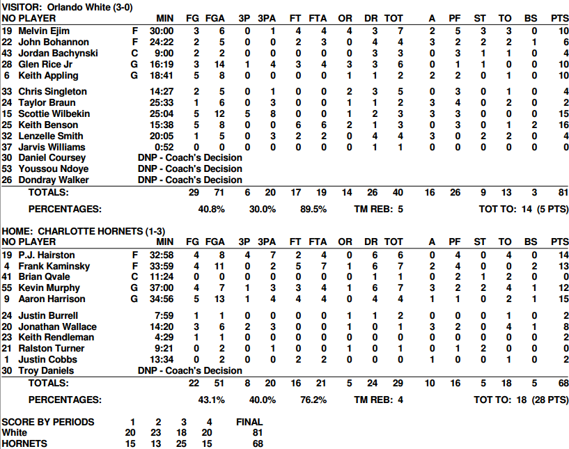 Orlando White – Charlotte Hornets 81-68
