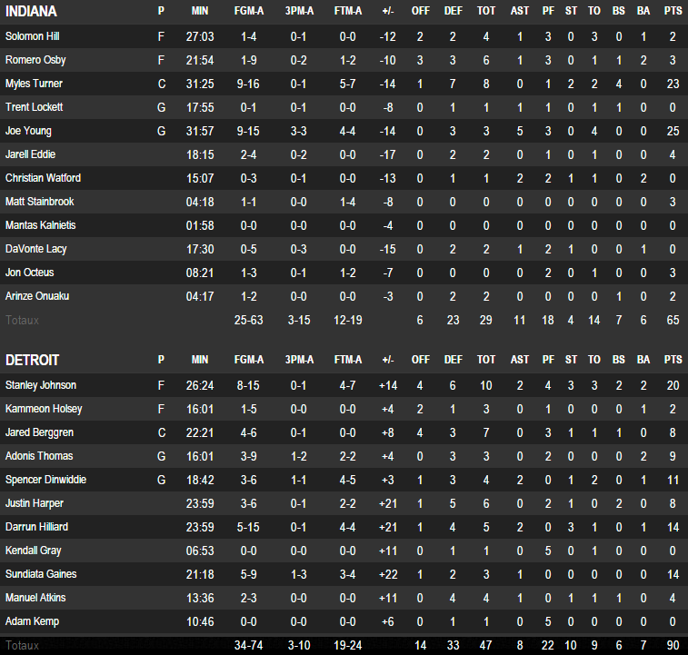 Detroit Pistons – Indiana Pacers 90-65
