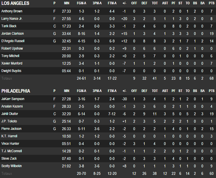 Los Angeles Lakers – Philadelphia Sixers 68-60