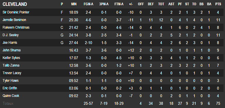 Côté Français Louis Labeyrie signe 2 points, 1 rebond, 1 passe et 1 contre en 8 minutes. Livio Jean-Charles 1 rebond et 1 passe en 16 minutes.