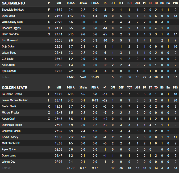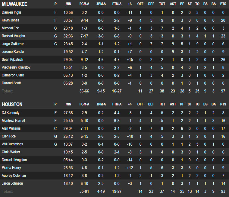 Parmi les autres performeurs chez les rookies: Rashad Vaughn (23 points à 7/17); Bobby Portis (16 points et 10 rebonds); Justin Anderson (16 points et 4 rebonds); Alan Williams (17 points et 8 rebonds) et Montrezl Harrell (16 points et 5 rebonds).