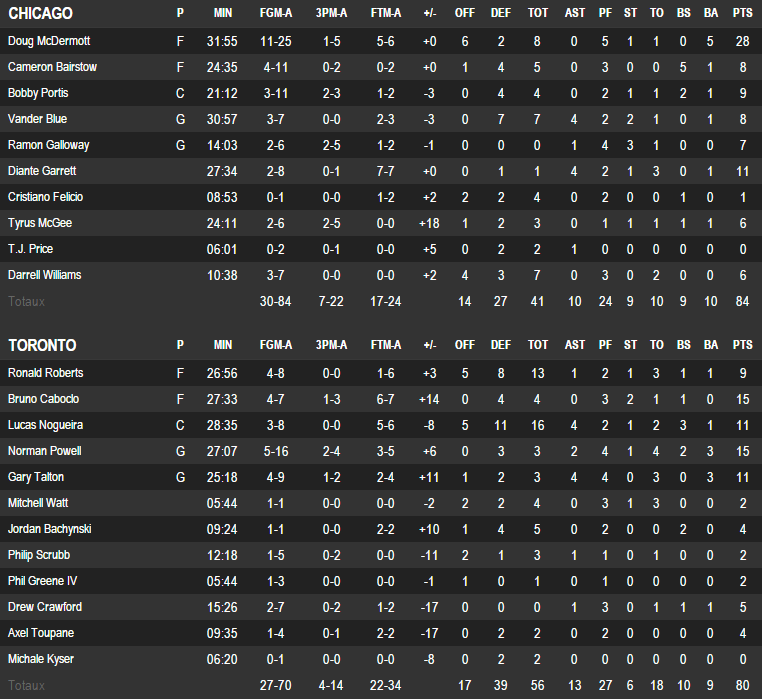 Joffrey Lauvergne signe un nouveau match solide avec 12 points à 6/10 et 11 rebonds. Les autres Français n’ont pas vraiment brillé. 4 points à 1/4 et 2 rebonds pour Axel Toupane; 4 points à 1/5 et 3 rebonds pour Louis Labeyrie et 2 points à 1/1 pour Jordan Aboudou