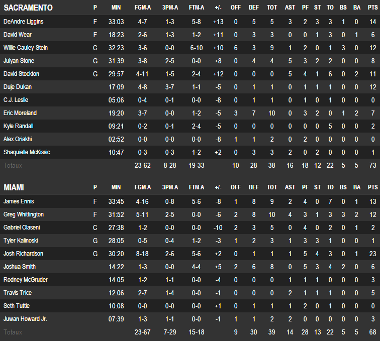 Sacramento Kings – Miami Heat 73-68
