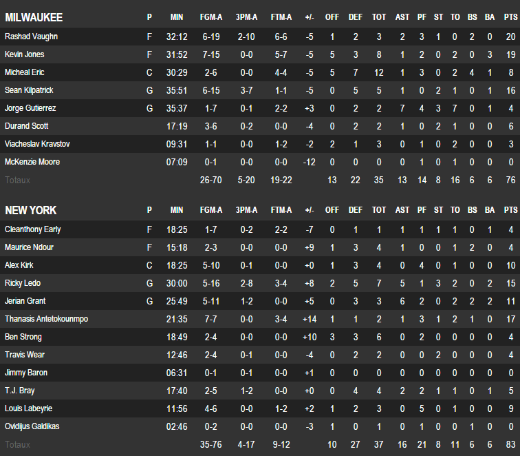 New York Knicks – Milwaukee Bucks 83-76