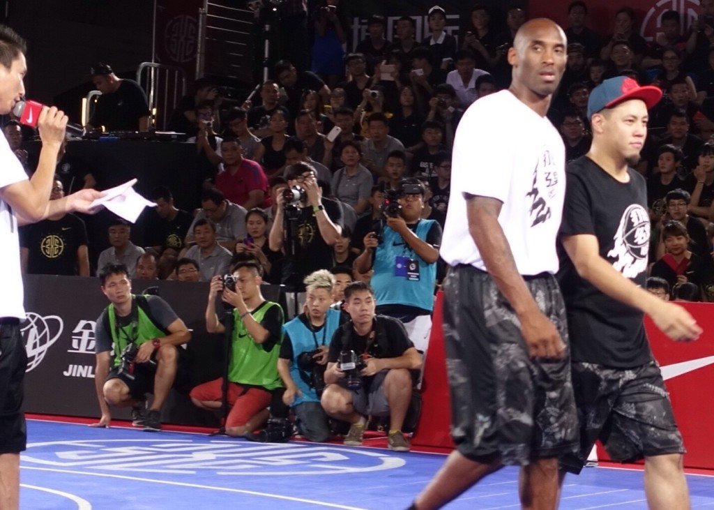 Kobe Bryant débute ce weekend un séjour de 5 jours en Chine (son 10e voyage dans le pays), comme toujours via son équipementier puisqu’il participe à la Nike RISE Campaign (tournoi /détection de joueurs à travers le pays ) 2015. Anthony Davis, Paul George et LeBron James (qui arrivera lui après la star des Lakers) sont également engagés dans le projet.