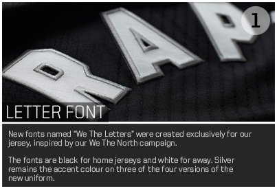 Les couleurs n'ont pas trop changé, mais le mot Raptors en arc c'est pas ce qu'il y a de plus courant…