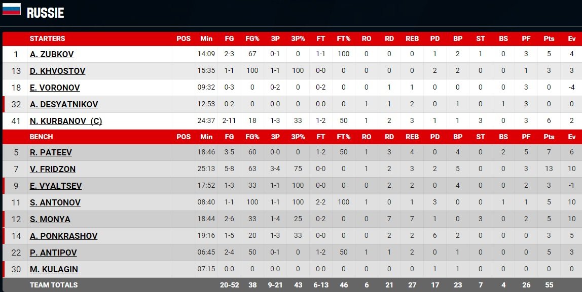 En dernier quart la Russie a fait tourner, ce qui a permis aux bleus de continuer de dérouler en prenant jusqu’à 38 points d’avance avec un 22-7 dans le dernier acte.