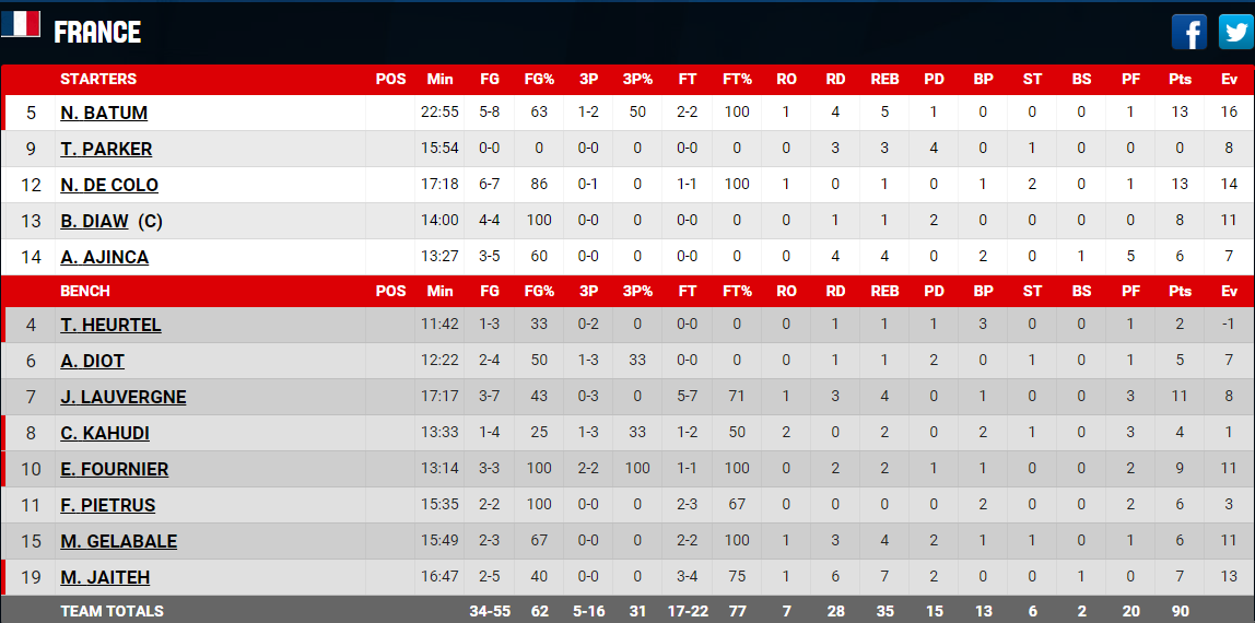 Nicolas Batum et Nando De Colo terminent meilleurs marqueurs avec 13 points alors que Joffrey Lauvergne en ajoute 11 et Evan Fournier 9. L’arrière du Magic a peut-être définitivement gagné sa place pour l’Euro avec des matchs très discrets de Thomas Heurtel et Charles Kahudi. Tony Parker est le seul à ne pas avoir marqué mais on doute que sa place à l’Euro soit remise en question…