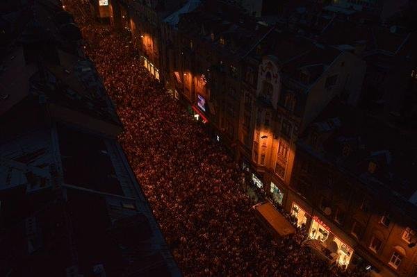 Comme nous l’expliquions tout à l’heure en vous montrant les highlights de Dzanan Musa, MVP du championnat d’Europe U16, la Bosnie-Herzégovine a décroché son premier titre FIBA en battant l’hôte lituanien. L’équipe est rentrée à Sarajevo et l’accueil qui lui a été réservé est tout bonnement inimaginable ! Plus de 50 000 personnes se sont massées dans les rues de Sarajevo pour fêter les jeunes héros.