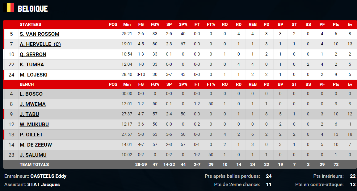 Après trois matchs où les bleus ont marché sur leurs adversaires, ils ont enfin eu une bonne opposition avec la Belgique, qui n’a rien donné de facile et joué avec une agressivité qui sentait bon l’Euro. La France a montré deux visages, un très mauvais en première mi-temps et un bien meilleur en seconde dans le sillage de Tony Parker, intenable, auteur de 24 points à 8/12. Ce dernier a ramené la France et leur a offert la victoire 74-72.