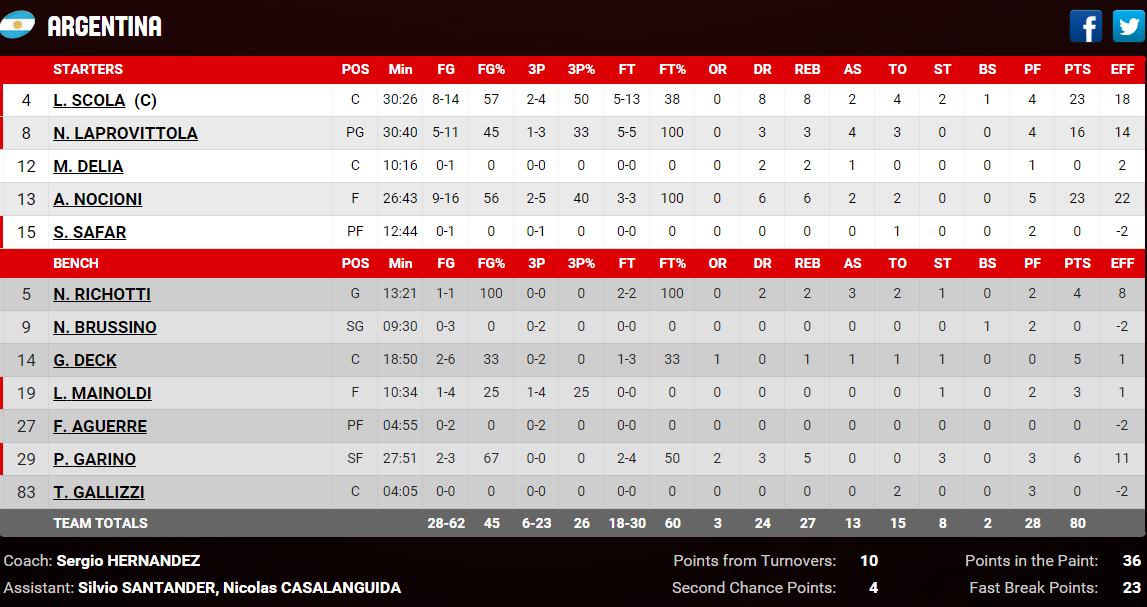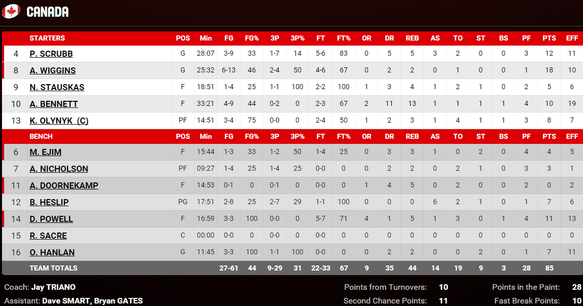 Canada – Argentine 85-80