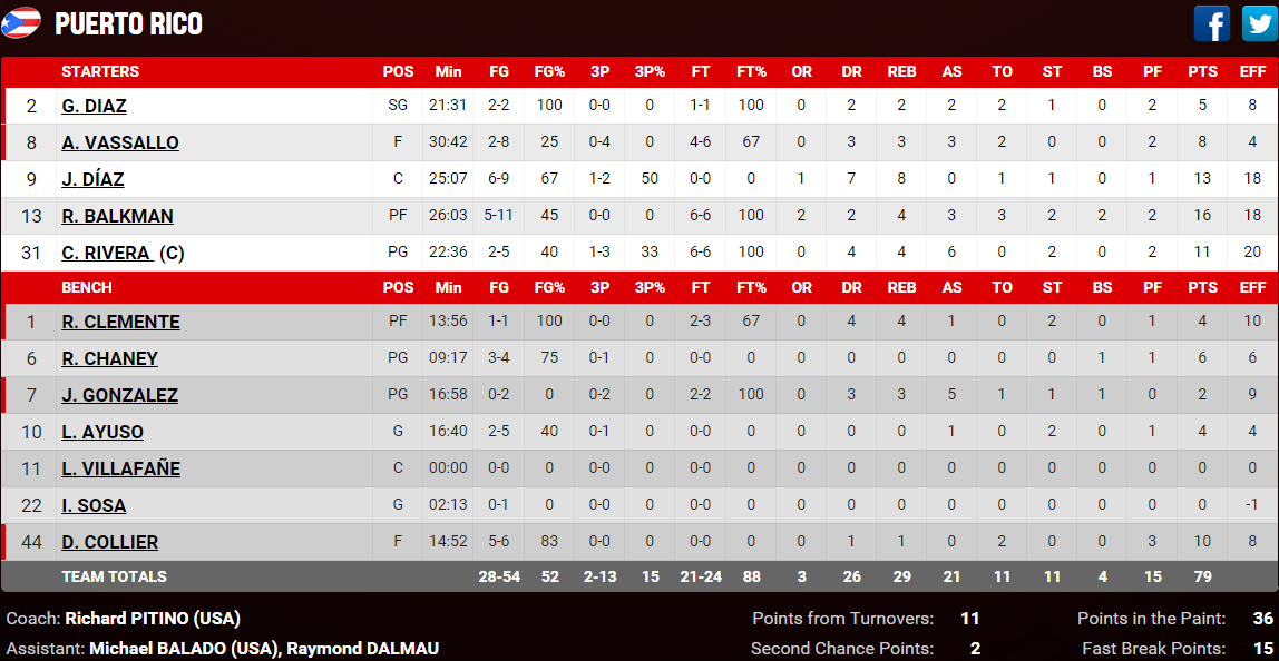 Porto Rico – Brésil 79-66