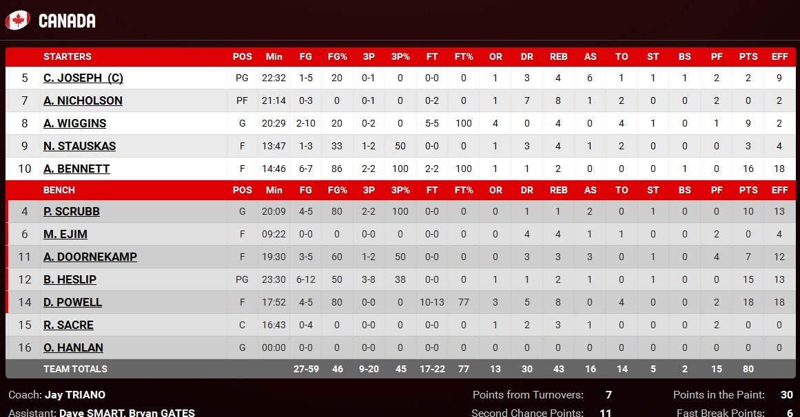 Canada 80 – Brésil 64