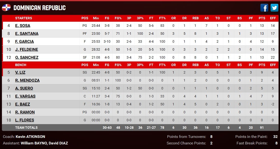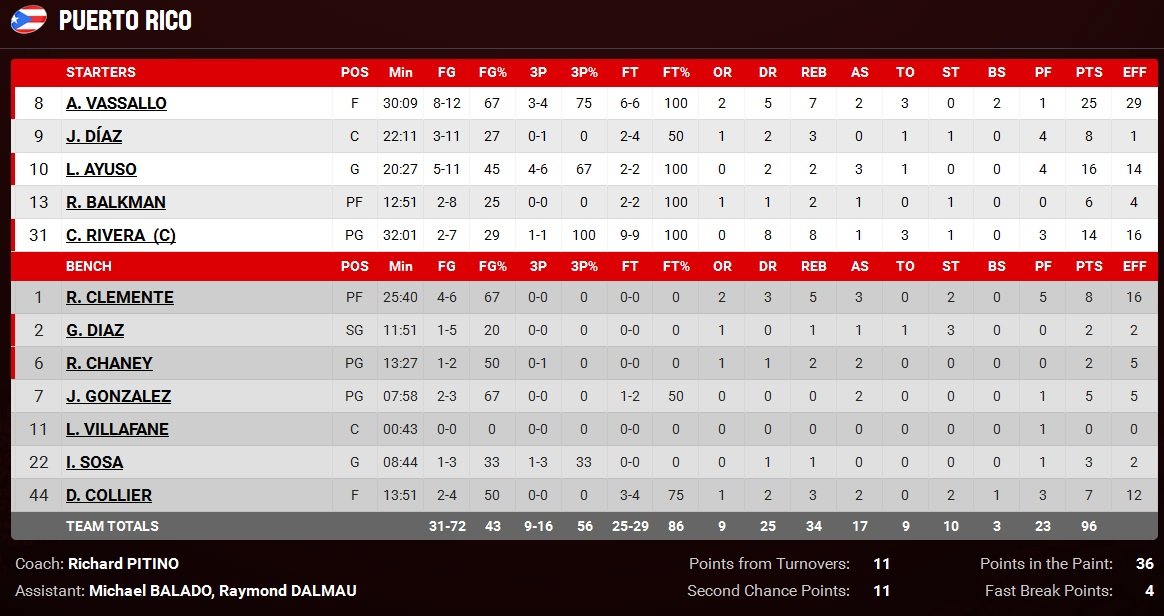 Dans l’autre match de la journée, Porto Rico est également resté invaincu après son succès face à la République Dominicaine, 96-91.