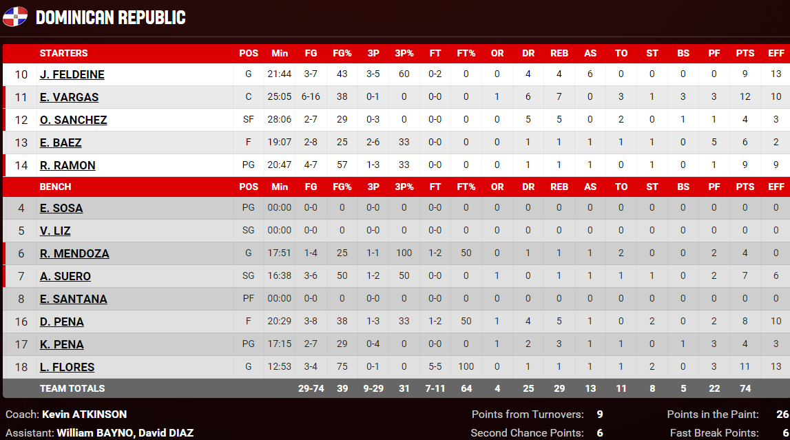 Canada – République dominicaine 86-74