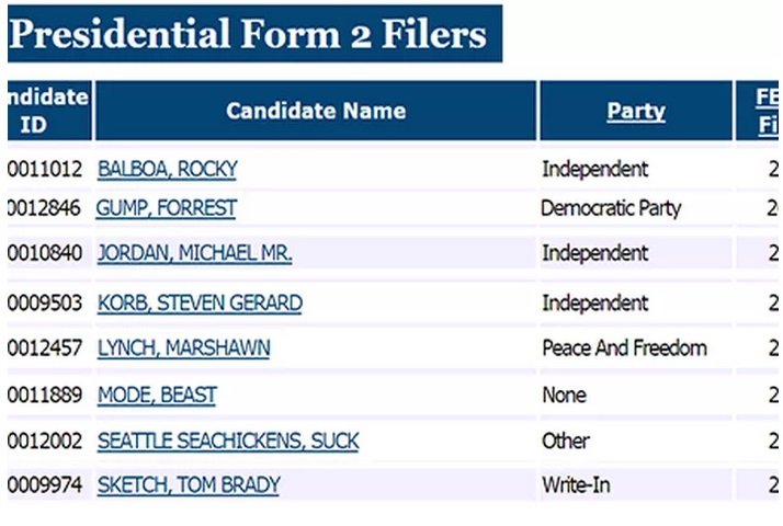 Non, Michael Jordan ne briguera sans doute pas la Maison Blanche en 2016, mais apparemment certains le souhaitent. SB Nation a en effet remarqué que Sa Majesté avait été proposé comme candidat par deux personnes sur les registres officiels. N’importe qui peut proposer des candidats, mais ces derniers ont 15 jours pour valider cette candidature. On notera que parmi les 867 personnes proposées, il y a d’autres sportifs comme Marshawn Lynch, Tom Brady ou encore des personnages de fiction comme Obi Wan Kenobi and Forrest Gump.