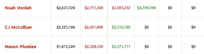 Cela concerna la 4e année de contrat pour McCollum, la 4e aussi pour Plumlee et enfin la 3e pour Vonleh.