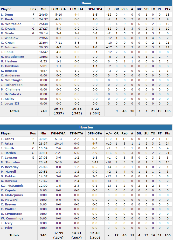 Houston Rockets – Miami Heat 100-105