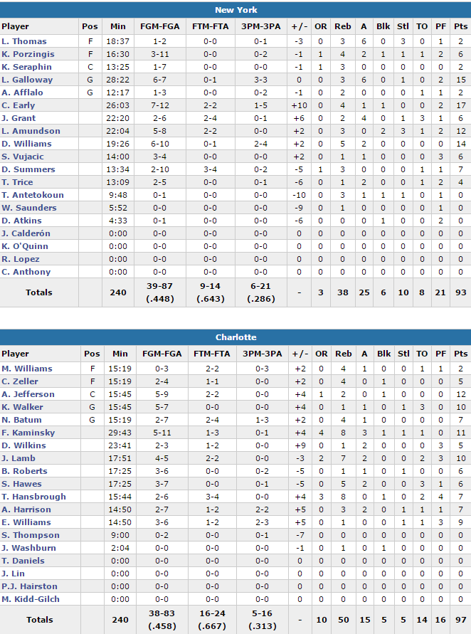Charlotte Hornets – New York Knicks 97-93