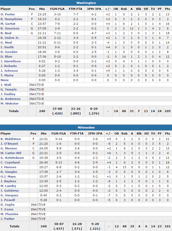 Milwaukee Bucks- Washington Wizards 101-105