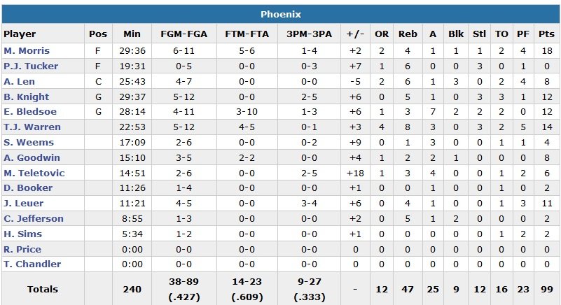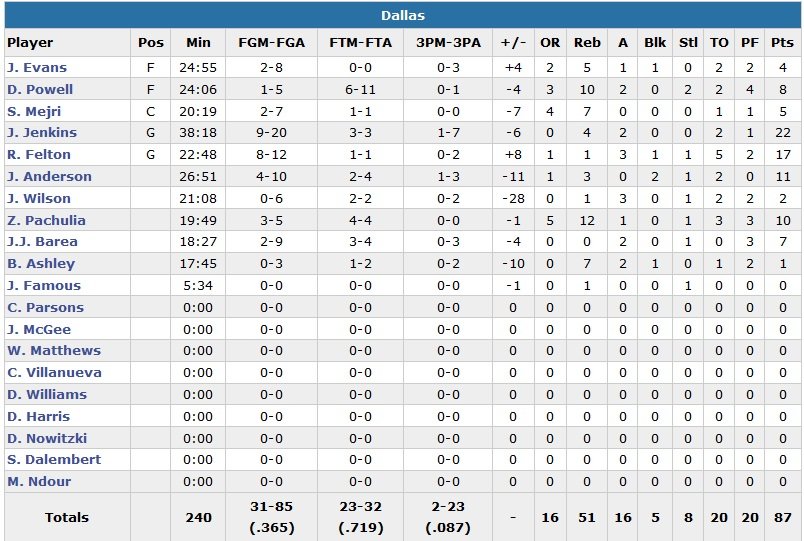 Enfin Phoenix n’a pas eu beaucoup de difficulté à se débarrasser des Mavericks (qui ont balancé un 2/23 à 3-points et 23/32 aux lancers-francs !), qui ont présenté une équipe B à l’American Airlines Center. John Jenkins exploite encore une fois au mieux son temps de jeu en terminant meilleur marqueur de la rencontre (22 points) mais les Suns et Markieff Morris (18 points) étaient tout simplement au-dessus.