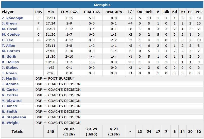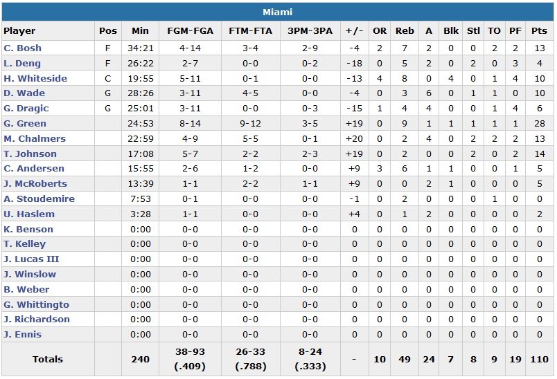 Mike Conley malgré son manque d’adresse dans le match (9 points à 1/7, 2 rebonds et 5 passes) a permis aux Grizzlies de rester invaincus sur un shoot à 3-points à moins d’une minute du buzzer contre Atlanta. Gerald Green a lui mis le feu en Floride avec 28 points à 9/14 et 9 rebonds en 24 minutes face à des Wizards portés par une raquette Kris Humphries (16 points et 12 rebonds) – Marcin Gortat (18 points 13 rebonds 5 contres) mais Dwyane Wade s’est occupé de tuer le match dans les ultimes secondes de la rencontre.