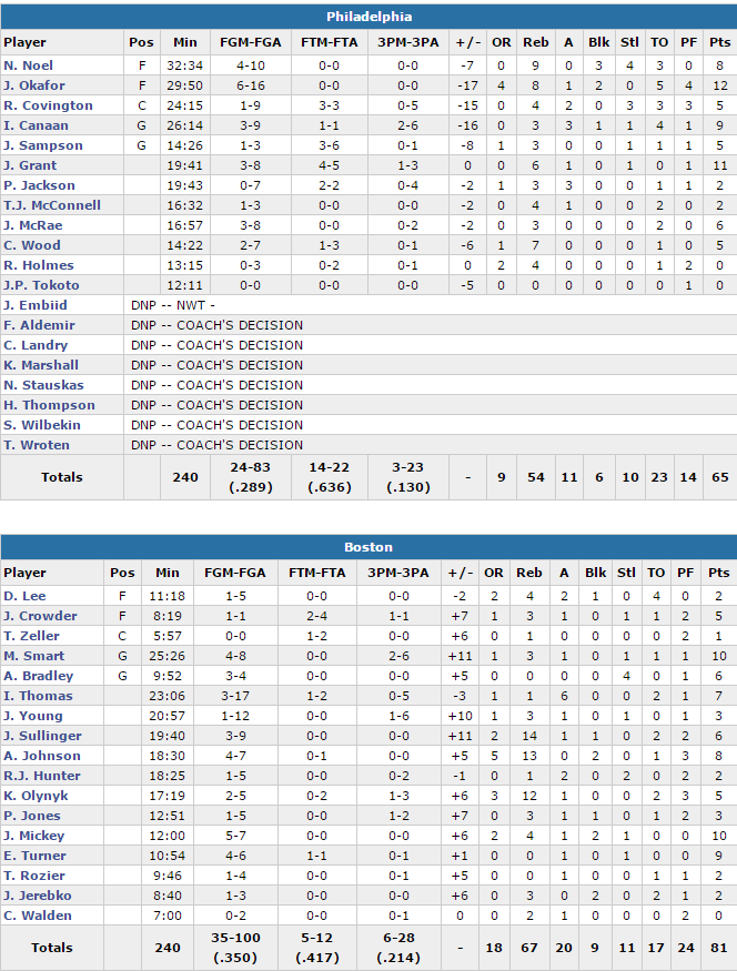 Boston Celtics – Philadelphia Sixers 81-65