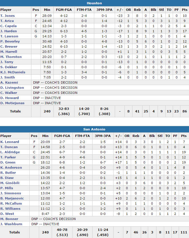 San Antonio Spurs – Houston Rockets 111-86