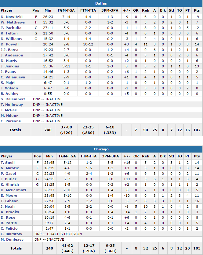 Chicago Bulls – Dallas Mavericks 103-102