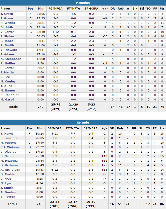 Orlando Magic – Memphis Grizzlies 86-76