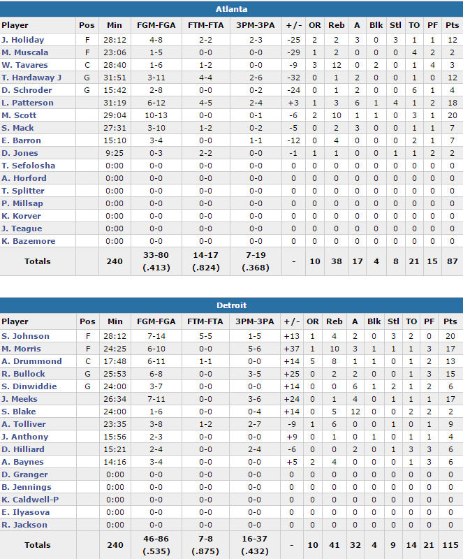 Detroit Pistons – Altanta Hawks 115-87