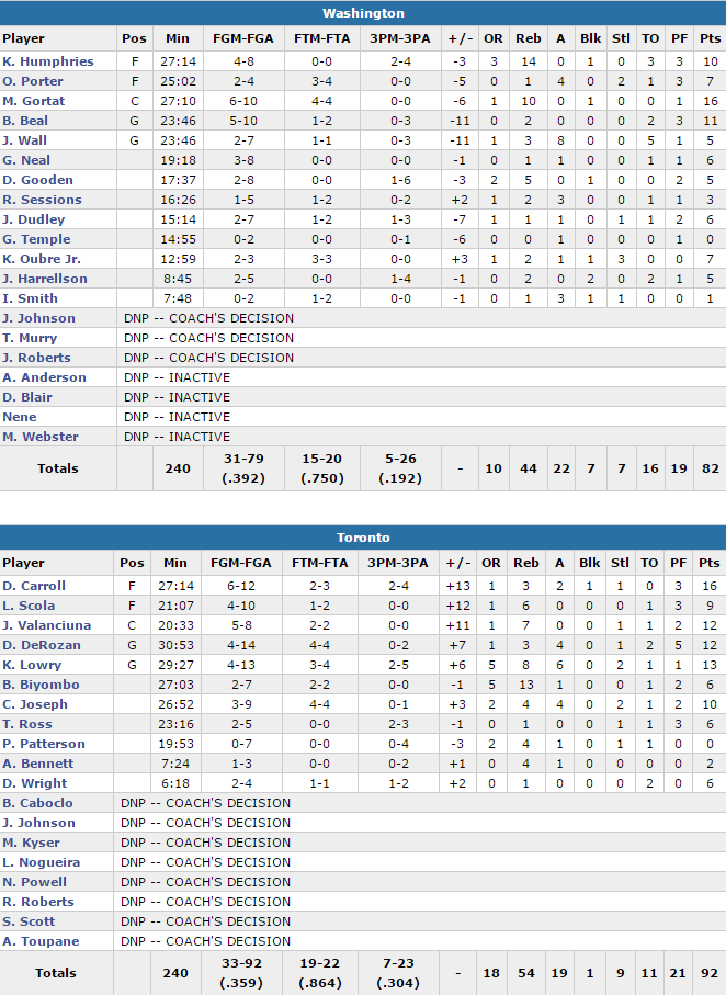 Toronto Raptors – Washington Wizards 92-82