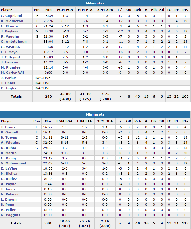 Minnesota Timberwolves – Milwaukee Bucks 112-108