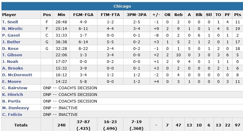 Spécialistes du comeback la saison passée (13 victoires après avoir été menés de 10 pts ou plus), les Cavs sont fidèles à leur réputation et recollent à 97-95 (33 secondes) grâce à deux 3-points signés Love. Rose manque l’occasion de tuer le match alors qu’il reste 10 secondes et James hérite donc d’un potentiel ballon égalisateur. Le quadruple MVP s’approche du cercle et semble pouvoir tenter un layup mais Gasol surgit et le n°23 finit les fesses par terre. Butler lui colle ensuite suffisamment aux basques pour évite tout tir à la dernière seconde, victoire !